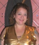 Below, author Deborah Lipp as "Pussy Galore" (Goldfinger Bond girl) at Bond Collector's Weekend #9.